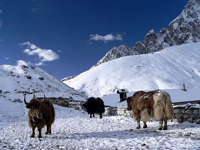 We spend two nights in Gokyo to help with altitude acclimatisation. In the morning, if weather permits, we climb the hill that rises above the northern shore of Lake Dudh Pokhari, called Gokyo Ri. The summit is marked by large cairns and prayer flags. Also from the top, Gokyo's turquoise lake, far below has a picturesque view. An excursion to fourth and fifth lake is recommended for passionate trekkers.